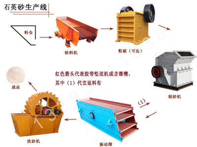 首先,石料由粗碎機(jī)進(jìn)行初步破碎,然后,產(chǎn)成的粗料由膠帶輸送機(jī)輸送至細(xì)碎機(jī)進(jìn)一步破碎,細(xì)碎后的石料進(jìn)入振動(dòng)篩篩分出兩種石子,滿足制砂機(jī)進(jìn)料粒度的石英砂進(jìn)制砂機(jī)進(jìn)行制砂,另一部分返料進(jìn)細(xì)破。進(jìn)制砂機(jī)的石子一部分制成砂,經(jīng)洗砂機(jī)(可選)清洗后制成成品砂,另一部分進(jìn)制砂機(jī)再次破碎。